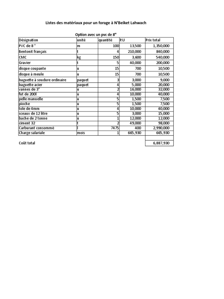 Devis Forage Materiaux De Construction Technologie General